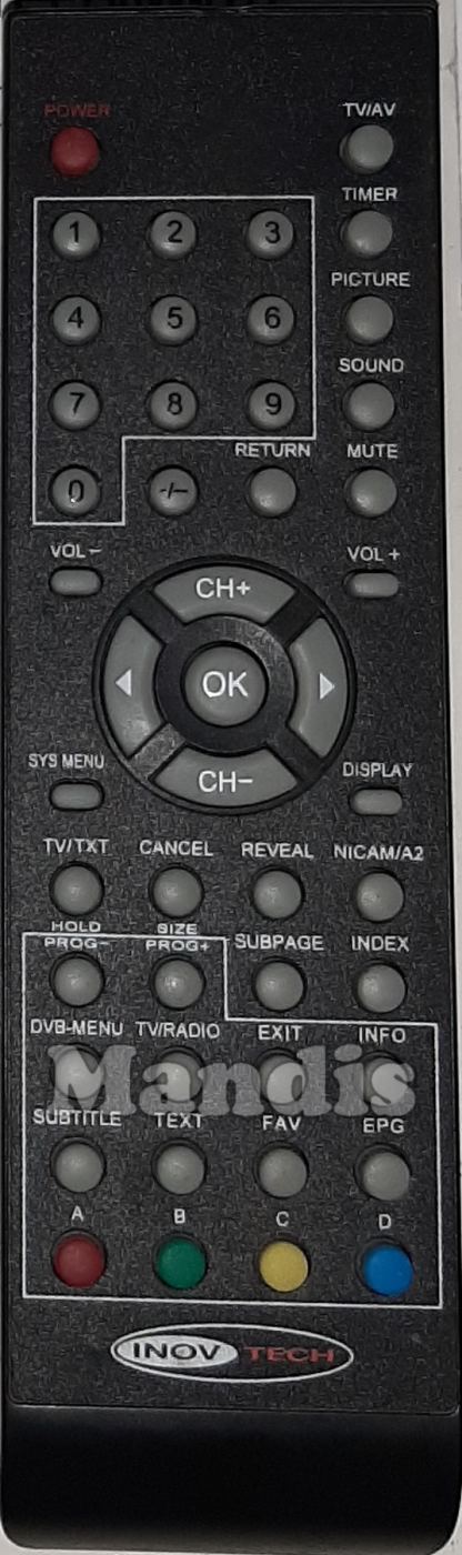 Comandament a distància original TL 1536W-BTP que serveix per televisors de la marca INOV TECH. Es tracta d'un model original de comandament a distància.