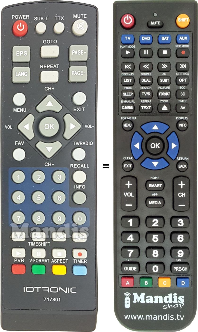 Aquest comandament a distància substitueix completament el teu 717801 en totes les seves funcions. No és un comandament universal, sinó una còpia exacta del teu original.
