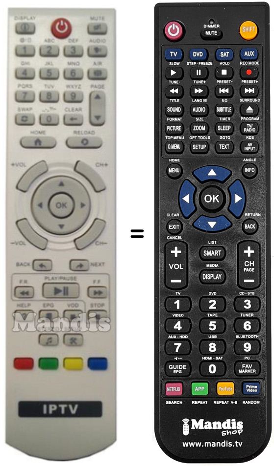 Comandament a distància que substitueix a l'original en totes les seves funcions.