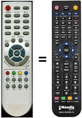 El comandament equivalent realitza totes les funcions, fins i tot quan el comandament original controla diversos aparells. Al comandament equivalent es poden programar diferents aparells amb els boton TV, DVD, SAT i AUX, d'aquesta manera es poden incloure totes les funcions del comandament original. Si si visualitza el manual de les tecles (instruccions del comandament a distància) podrà comprovar que hi ha totes les funcions.