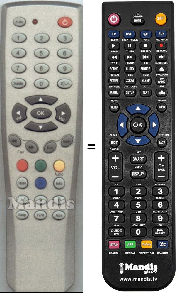 Comandament a distància que substitueix a l'original en totes les seves funcions.