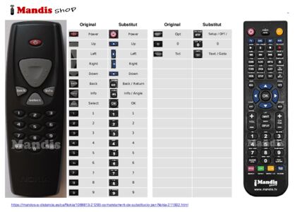 A continuació, us mostrarem la correspondència entre cada un dels botons del comandament original i el botó que realitza la mateixa funció en el comandament de substitució. En alguns casos, és possible que necessiti prémer la tecla SHIFT abans de prémer un altre botó per realitzar certes accions. Aquestes funcions addicionals sovint no s'utilitzen gaire i s'inclouen per facilitar la comprensió del comandament de substitució, o perquè el comandament original té més botons que el seu equivalent.