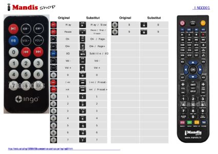 Aquest comandament a distància substitueix completament el teu Ingo001 en totes les seves funcions. No és un comandament universal, sinó una còpia exacta del teu original.