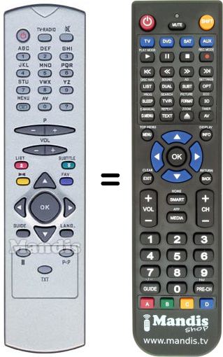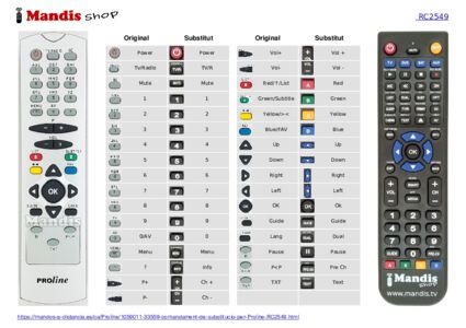 Aquest comandament a distància substitueix completament el teu RC2549 en totes les seves funcions. No és un comandament universal, sinó una còpia exacta del teu original.