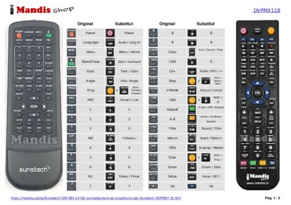 A continuació, us mostrarem la correspondència entre cada un dels botons del comandament original i el botó que realitza la mateixa funció en el comandament de substitució. En alguns casos, és possible que necessiti prémer la tecla SHIFT abans de prémer un altre botó per realitzar certes accions. Aquestes funcions addicionals sovint no s'utilitzen gaire i s'inclouen per facilitar la comprensió del comandament de substitució, o perquè el comandament original té més botons que el seu equivalent.