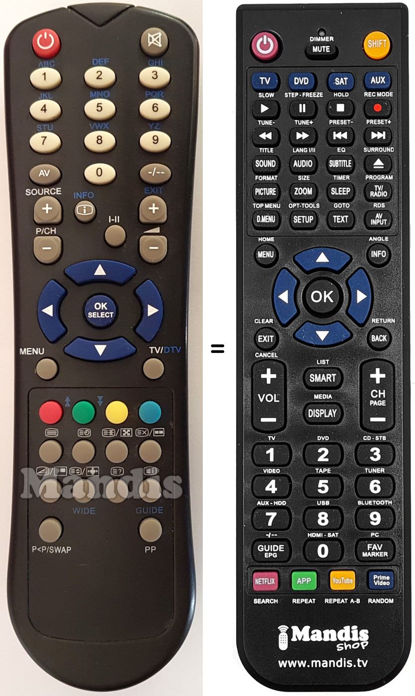 Comandament a distància que substitueix a l'original en totes les seves funcions.