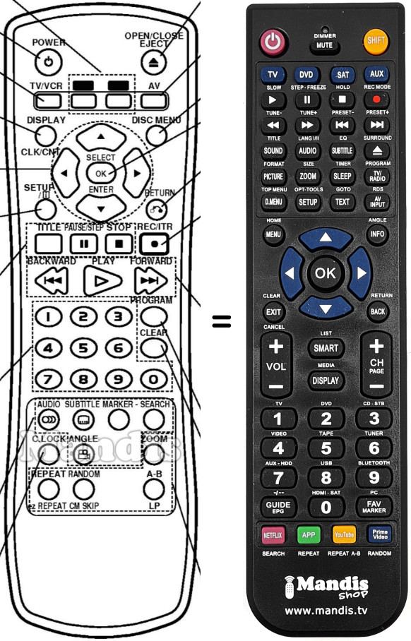 Comandament a distància que substitueix a l'original en totes les seves funcions.