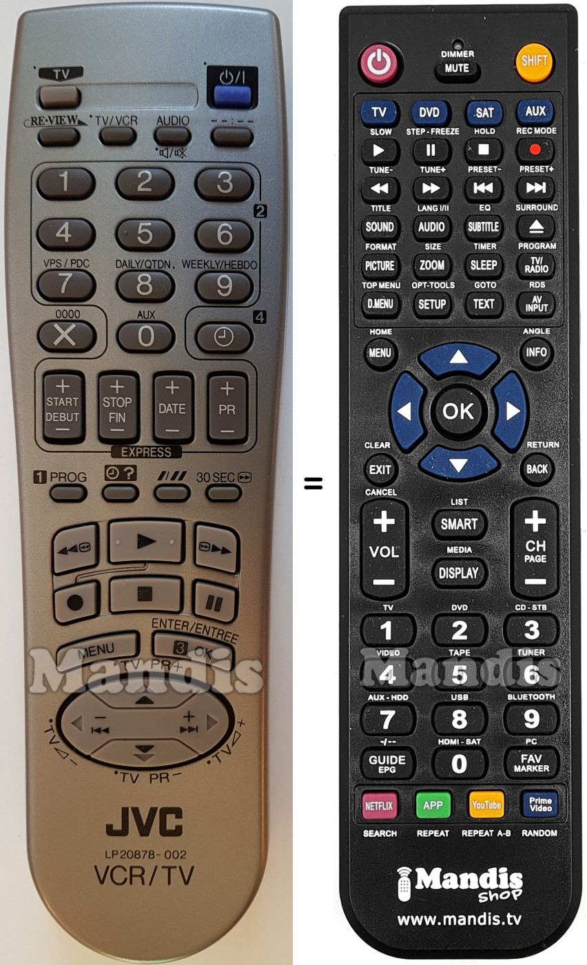 Aquest comandament a distància substitueix completament el teu LP 20878-002 en totes les seves funcions. No és un comandament universal, sinó una còpia exacta del teu original.