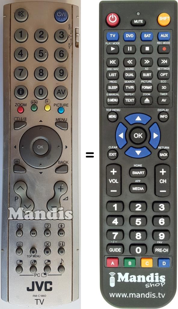 Aquest comandament a distància substitueix completament el teu RM-C 1860 (VE30034032) en totes les seves funcions. No és un comandament universal, sinó una còpia exacta del teu original.