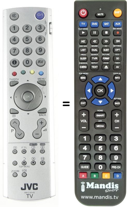 Aquest comandament a distància substitueix completament el teu RM-C1814S-2C en totes les seves funcions. No és un comandament universal, sinó una còpia exacta del teu original.