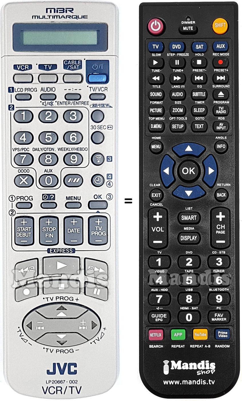 Aquest comandament a distància substitueix completament el teu LP 20667-002 en totes les seves funcions. No és un comandament universal, sinó una còpia exacta del teu original.