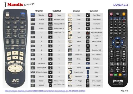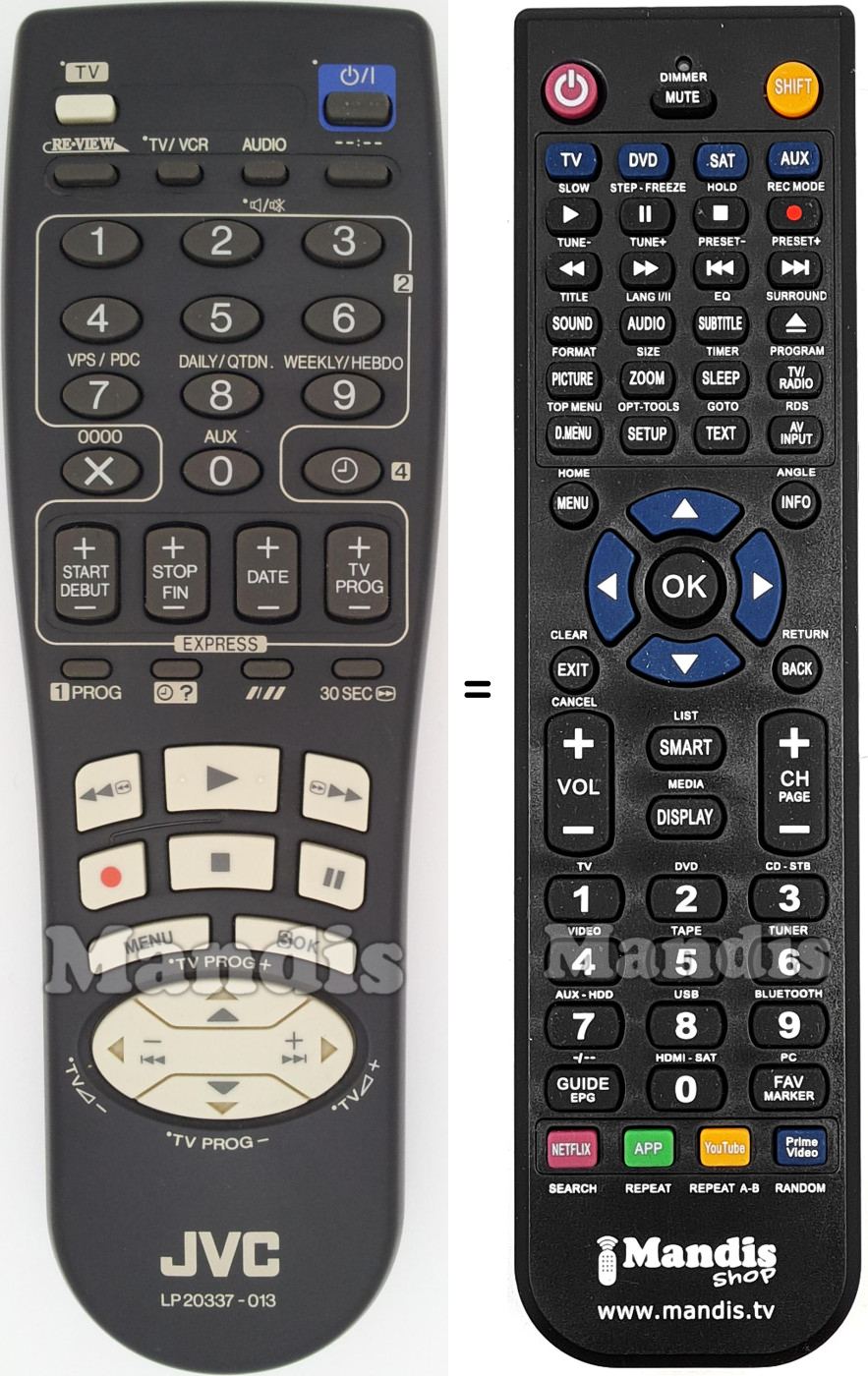 Aquest comandament a distància substitueix completament el teu LP20337013A en totes les seves funcions. No és un comandament universal, sinó una còpia exacta del teu original.