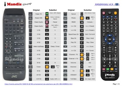 A continuació, us mostrarem la correspondència entre cada un dels botons del comandament original i el botó que realitza la mateixa funció en el comandament de substitució. En alguns casos, és possible que necessiti prémer la tecla SHIFT abans de prémer un altre botó per realitzar certes accions. Aquestes funcions addicionals sovint no s'utilitzen gaire i s'inclouen per facilitar la comprensió del comandament de substitució, o perquè el comandament original té més botons que el seu equivalent.