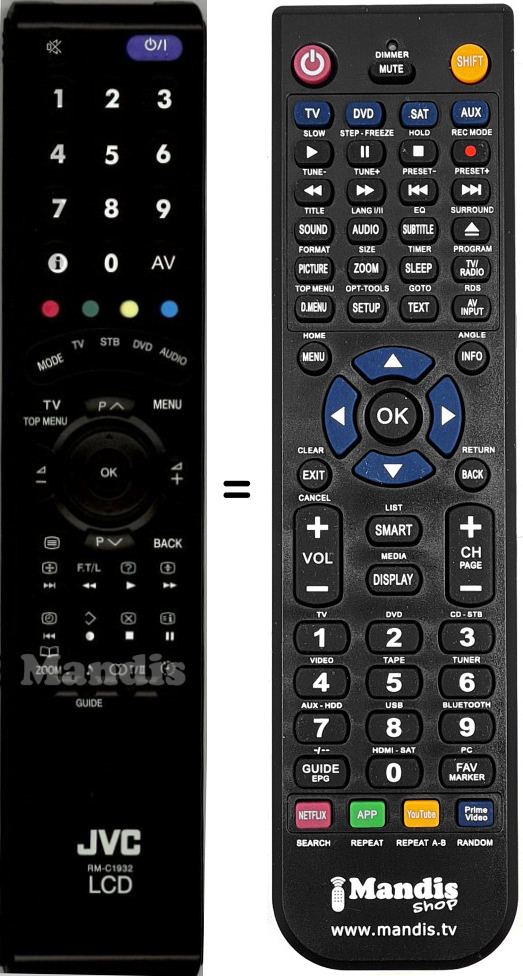 Comandament a distància que substitueix el comandament RMC1932 (RMC19321C) en totes les seves funcions.