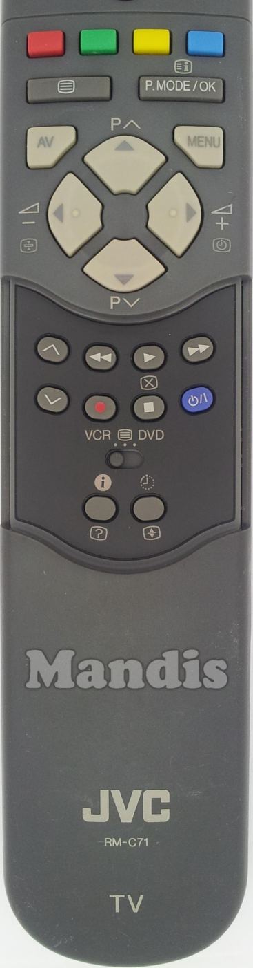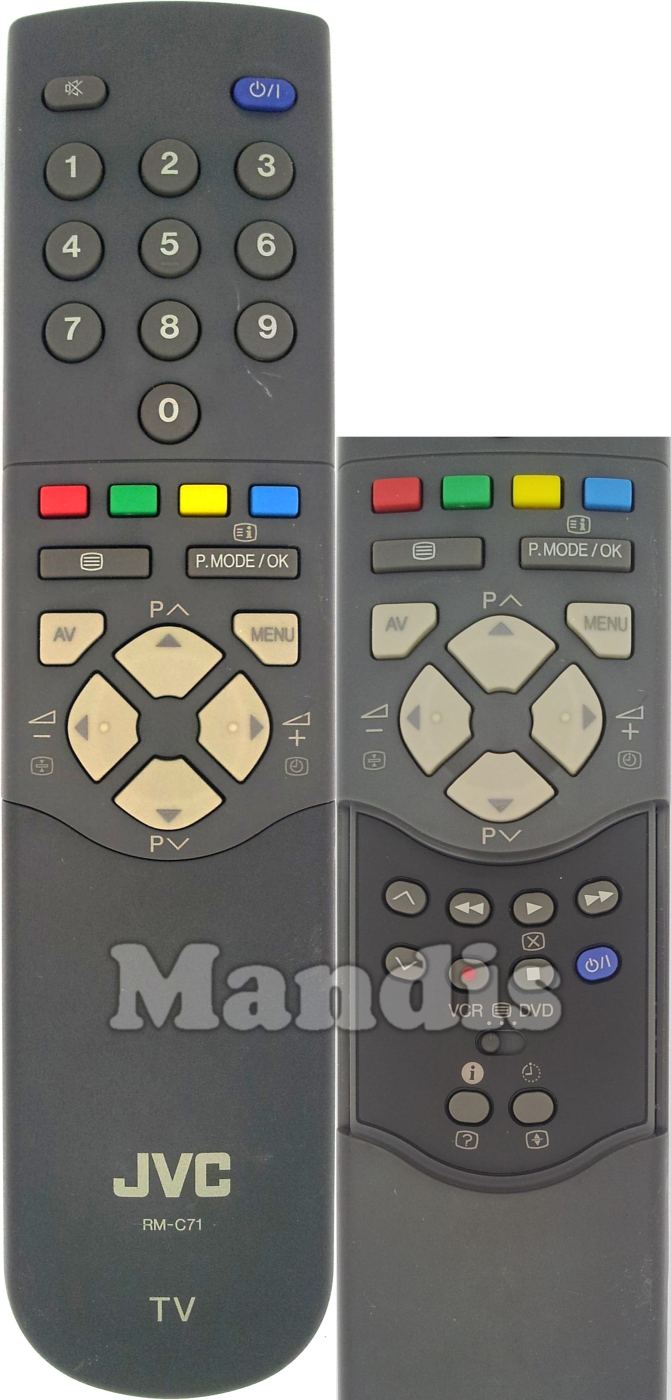 Comandament a distància original RM-C71 que serveix per televisors de la marca JVC. Es tracta d'un model original de comandament a distància.