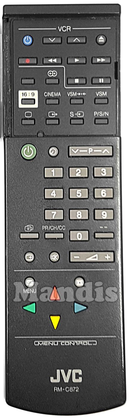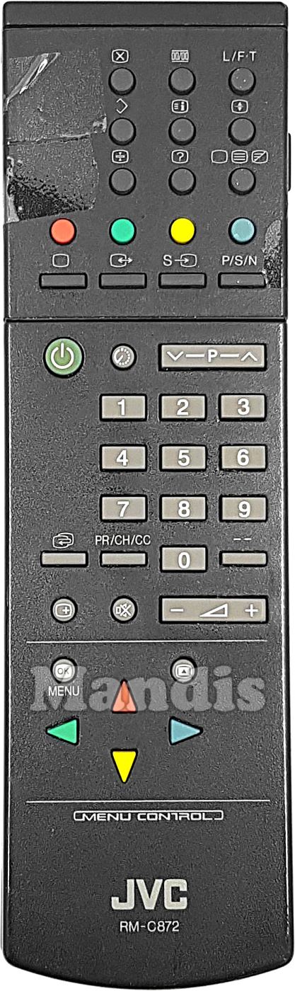 Comandament a distància original RM-C872 que serveix per televisors de la marca JVC. Es tracta d'un model original de comandament a distància.