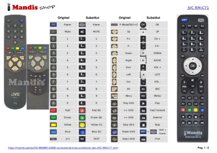 Comandament a distància recanvi RM-C71 que serveix per televisors de la marca JVC.