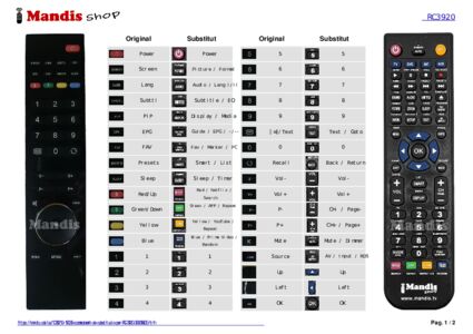 S'inclou un document amb la correspondència dels botons del nou comandament a distància per facilitar el seu ús.