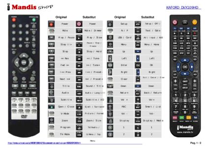 A continuació, us mostrarem la correspondència entre cada un dels botons del comandament original i el botó que realitza la mateixa funció en el comandament de substitució. En alguns casos, és possible que necessiti prémer la tecla SHIFT abans de prémer un altre botó per realitzar certes accions. Aquestes funcions addicionals sovint no s'utilitzen gaire i s'inclouen per facilitar la comprensió del comandament de substitució, o perquè el comandament original té més botons que el seu equivalent.