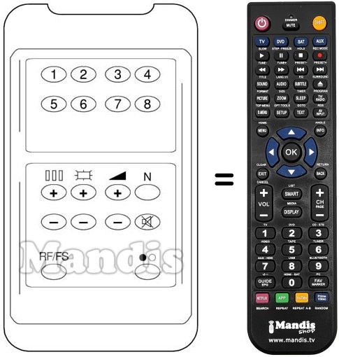 Comandament a distància que substitueix a l'original en totes les seves funcions. No es tracta d'un comandament universal sinó d'una còpia que substitueix l'original. Rebrà el comandament completament preparat per fer-lo funcionar només necessita posar-li les piles. No cal programar-lo. Té total garantia de que el comandament cumplirà amb les mateixes funcions de l'original.