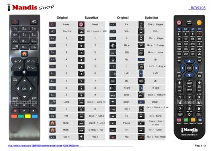 Aquest comandament a distància substitueix completament el teu RC39105 (30100821) en totes les seves funcions. No és un comandament universal, sinó una còpia exacta del teu original.