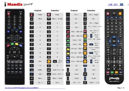 A continuació, us mostrarem la correspondència entre cada un dels botons del comandament original i el botó que realitza la mateixa funció en el comandament de substitució. En alguns casos, és possible que necessiti prémer la tecla SHIFT abans de prémer un altre botó per realitzar certes accions. Aquestes funcions addicionals sovint no s'utilitzen gaire i s'inclouen per facilitar la comprensió del comandament de substitució, o perquè el comandament original té més botons que el seu equivalent.