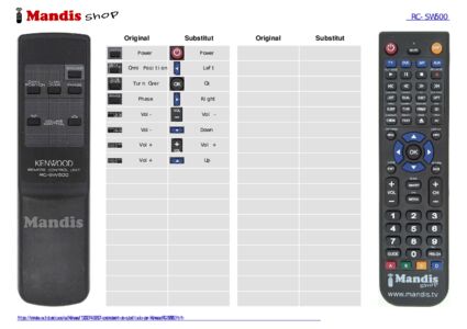 Aquest comandament a distància substitueix completament el teu RC-SW500 en totes les seves funcions. No és un comandament universal, sinó una còpia exacta del teu original.
