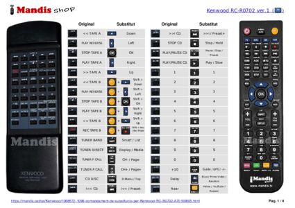 A continuació, us mostrarem la correspondència entre cada un dels botons del comandament original i el botó que realitza la mateixa funció en el comandament de substitució. En alguns casos, és possible que necessiti prémer la tecla SHIFT abans de prémer un altre botó per realitzar certes accions. Aquestes funcions addicionals sovint no s'utilitzen gaire i s'inclouen per facilitar la comprensió del comandament de substitució, o perquè el comandament original té més botons que el seu equivalent.