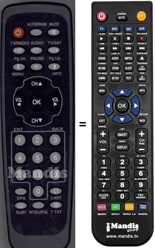 Comandament a distància que substitueix a l'original en totes les seves funcions.