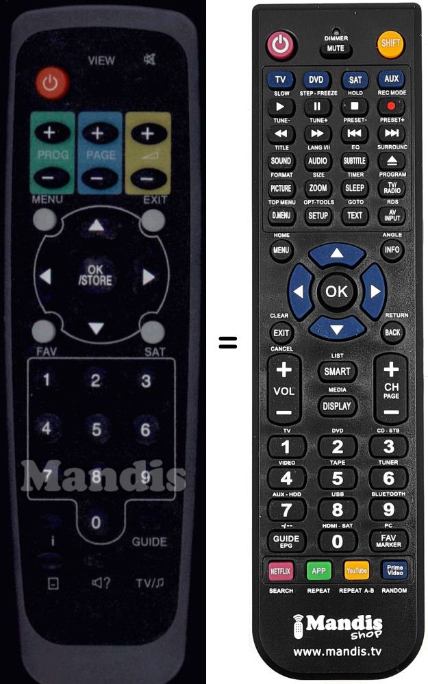 Comandament a distància que substitueix a l'original en totes les seves funcions.