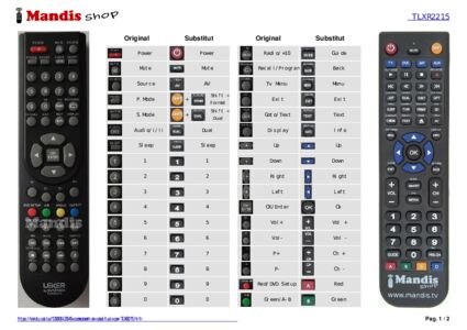 A continuació, us mostrarem la correspondència entre cada un dels botons del comandament original i el botó que realitza la mateixa funció en el comandament de substitució. En alguns casos, és possible que necessiti prémer la tecla SHIFT abans de prémer un altre botó per realitzar certes accions. Aquestes funcions addicionals sovint no s'utilitzen gaire i s'inclouen per facilitar la comprensió del comandament de substitució, o perquè el comandament original té més botons que el seu equivalent.