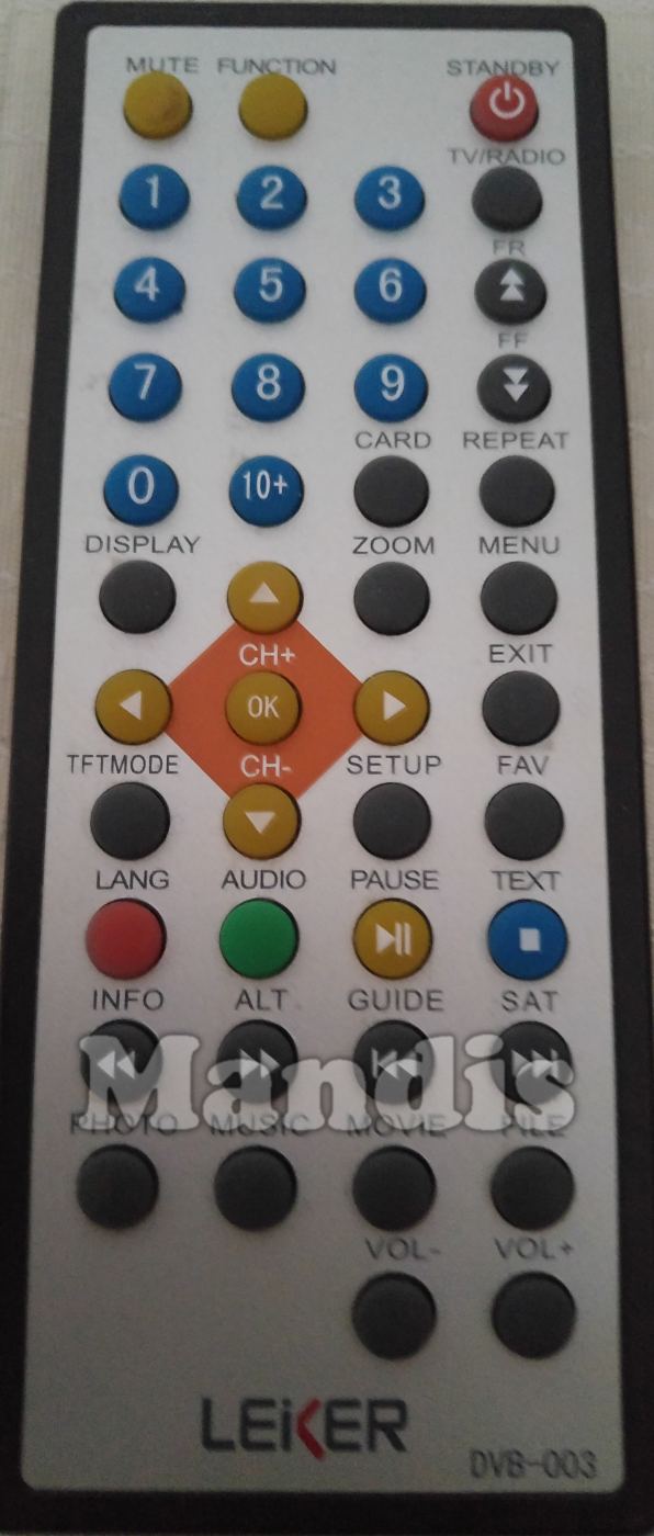 Comandament a distància original DVB-003 que serveix per televisors de la marca LEIKER. Es tracta d'un model original de comandament a distància.