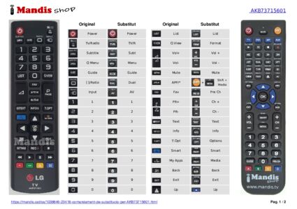 Aquest comandament a distància substitueix completament el teu AKB 73655837 en totes les seves funcions. No és un comandament universal, sinó una còpia exacta del teu original.