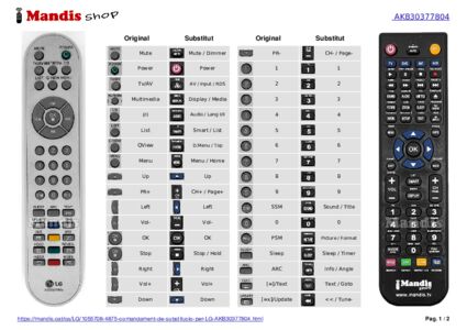 A continuació, us mostrarem la correspondència entre cada un dels botons del comandament original i el botó que realitza la mateixa funció en el comandament de substitució. En alguns casos, és possible que necessiti prémer la tecla SHIFT abans de prémer un altre botó per realitzar certes accions. Aquestes funcions addicionals sovint no s'utilitzen gaire i s'inclouen per facilitar la comprensió del comandament de substitució, o perquè el comandament original té més botons que el seu equivalent.