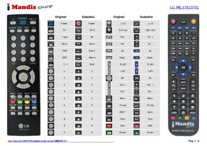 Aquest comandament a distància substitueix completament el teu MKJ37815701 en totes les seves funcions. No és un comandament universal, sinó una còpia exacta del teu original.