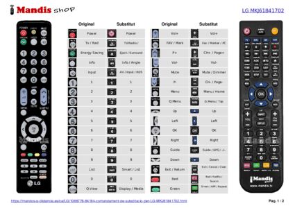 Aquest comandament a distància substitueix completament el teu MKJ61841702 en totes les seves funcions. No és un comandament universal, sinó una còpia exacta del teu original.