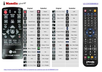 Aquest comandament a distància substitueix completament el teu COV30849810 en totes les seves funcions. No és un comandament universal, sinó una còpia exacta del teu original.