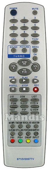 Comandament a distància original 6710V00077V que serveix per televisors de la marca LG. Es tracta d'un model original de comandament a distància.