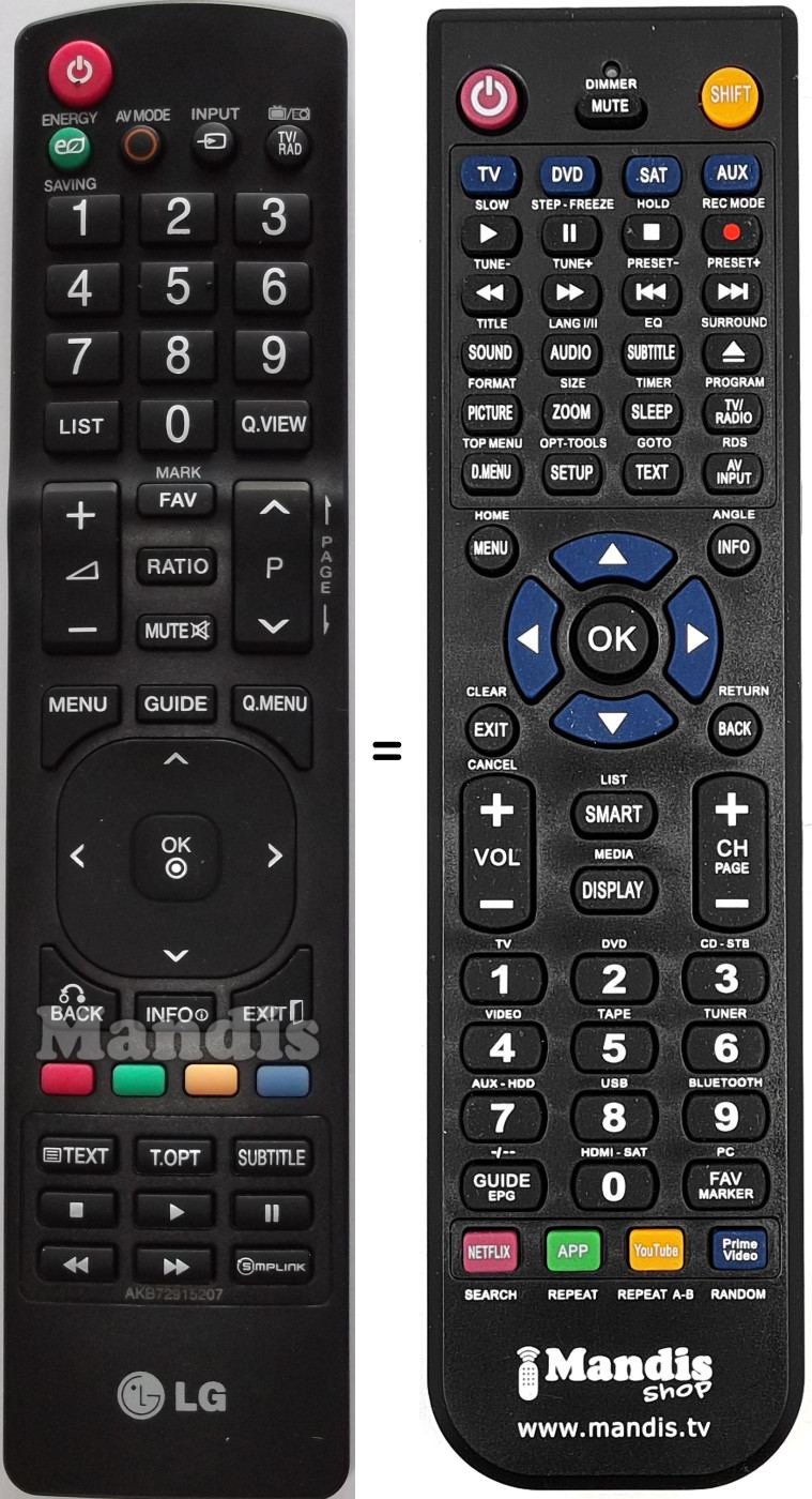Comandament a distància que substitueix el comandament AKB72915207 en totes les seves funcions.