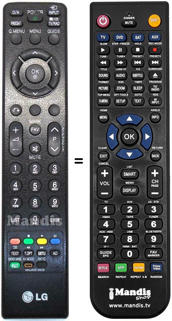 Comandament a distància que substitueix el comandament MKJ42519626 en totes les seves funcions.