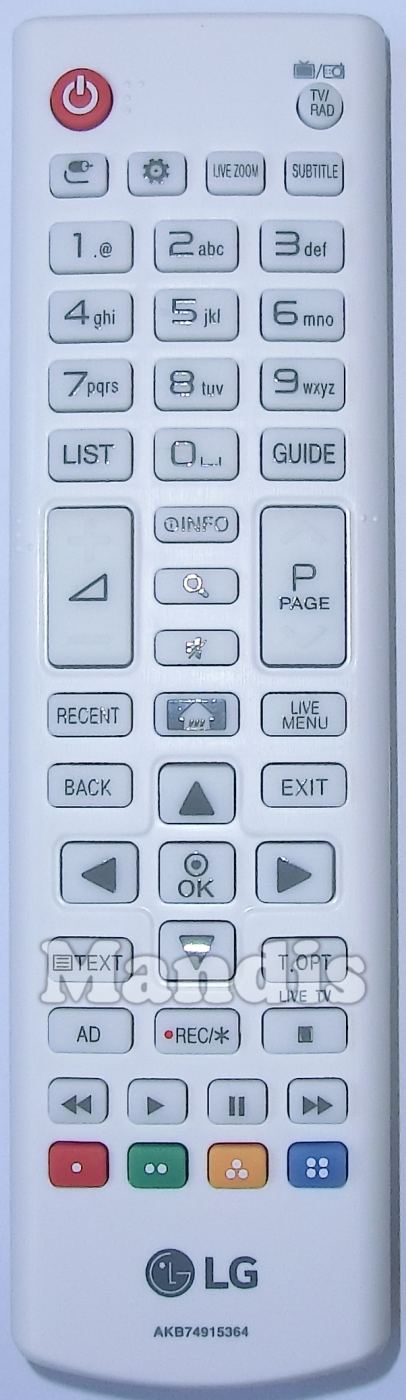 Comandament a distància original AKB74915364 que serveix per televisors de la marca LG. Es tracta d'un model original de comandament a distància.