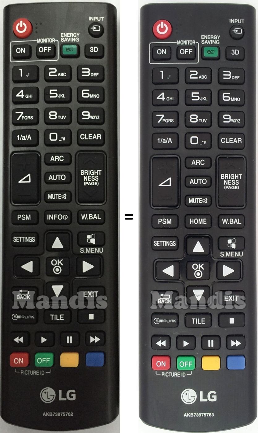 Comandaments equivalents que substitueixen en totes les seves funcions al comandament LG AKB73975763: