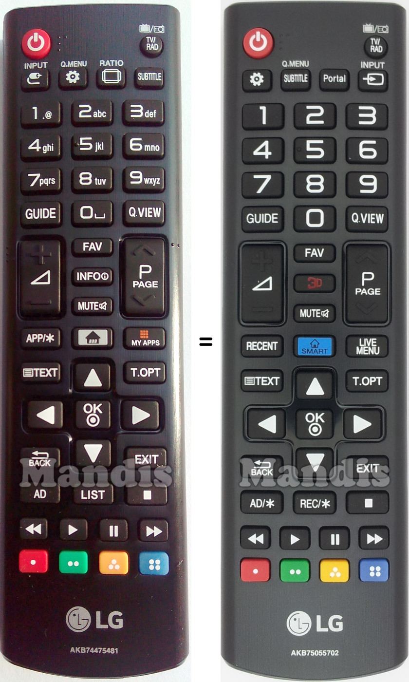 Comandaments equivalents que substitueixen en totes les seves funcions al comandament LG AKB75055702: