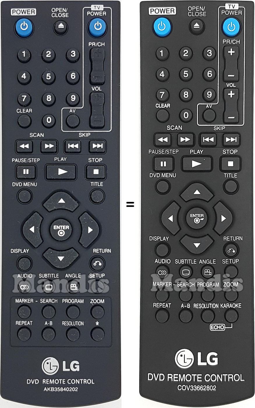 Comandaments equivalents que substitueixen en totes les seves funcions al comandament LG COV33662802: