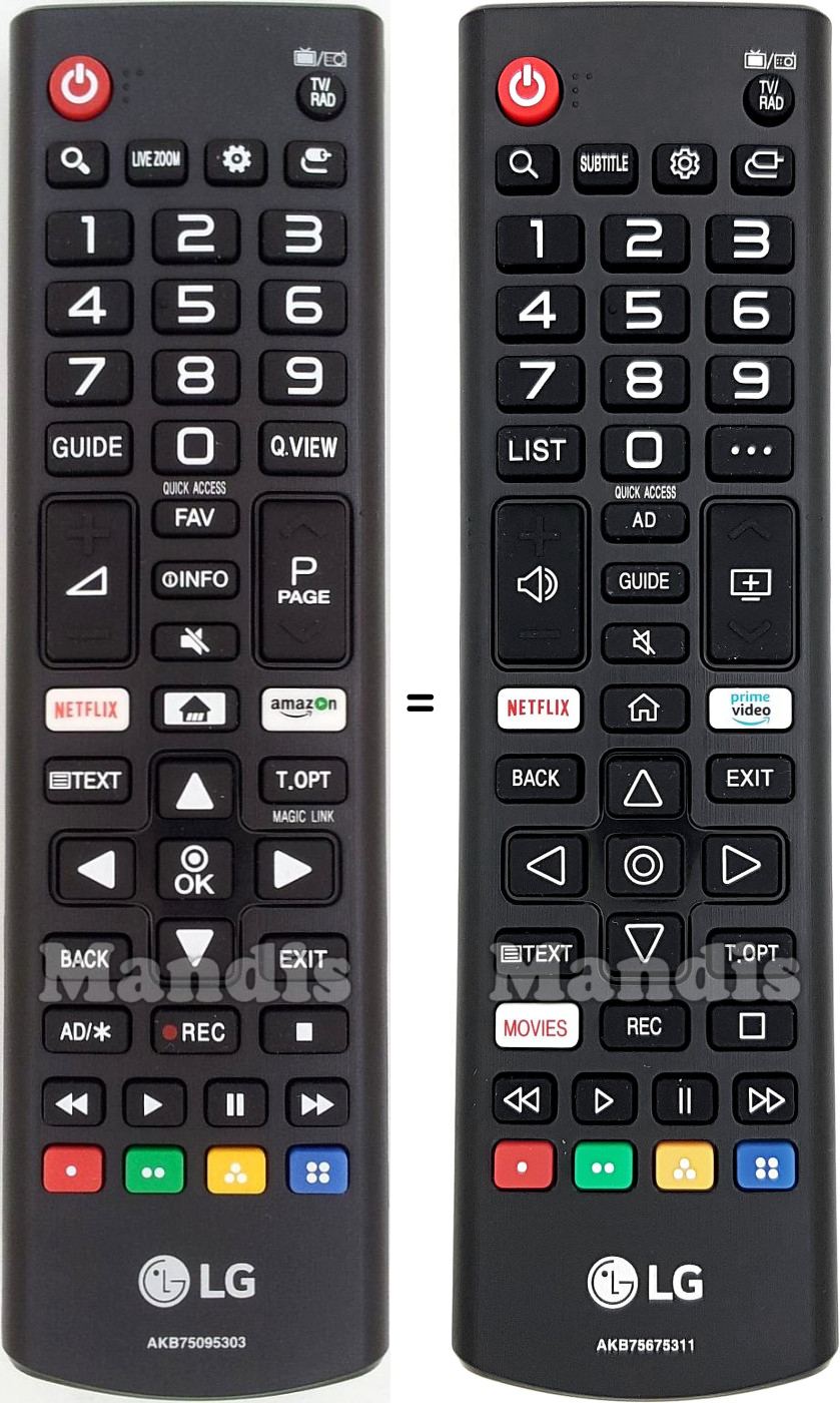 Comandaments equivalents que substitueixen en totes les seves funcions al comandament LG AKB75675311: