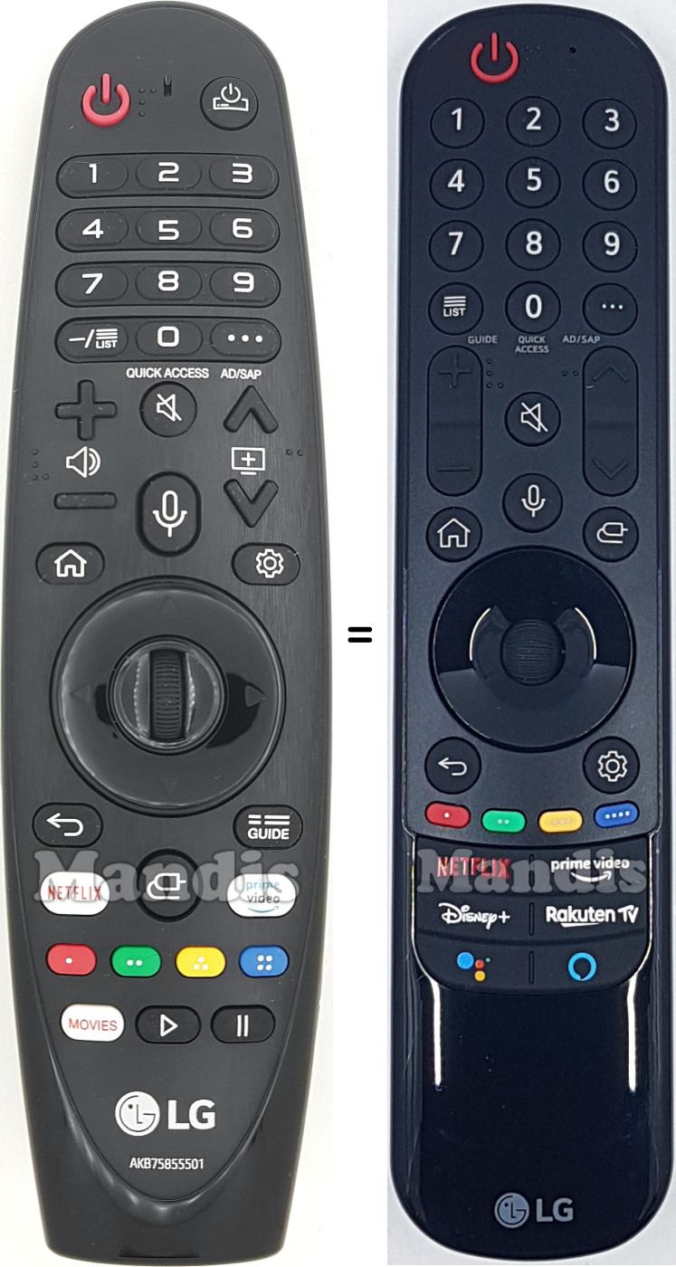 Comandaments equivalents que substitueixen en totes les seves funcions al comandament LG MR21GA (AKB76039701):