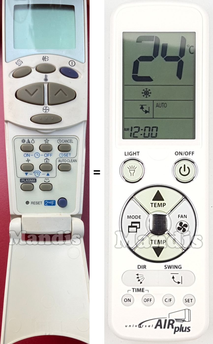 Comandaments equivalents que substitueixen en totes les seves funcions al comandament LG Unitronic Air Plus: