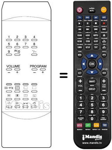 Comandament a distància que substitueix a l'original en totes les seves funcions. No es tracta d'un comandament universal sinó d'una còpia que substitueix l'original. Rebrà el comandament completament preparat per fer-lo funcionar només necessita posar-li les piles. No cal programar-lo. Té total garantia de que el comandament cumplirà amb les mateixes funcions de l'original.