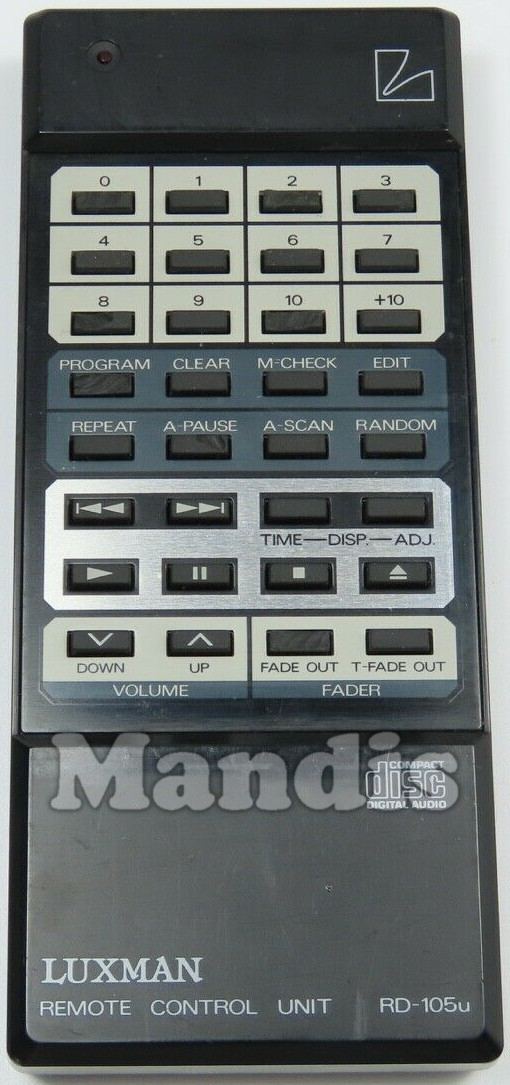 Comandament a distància original RD-105u que serveix per cadena hi-fi de la marca LUXMAN. Es tracta d'un model original de comandament a distància.
