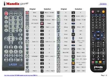 A continuació, us mostrarem la correspondència entre cada un dels botons del comandament original i el botó que realitza la mateixa funció en el comandament de substitució. En alguns casos, és possible que necessiti prémer la tecla SHIFT abans de prémer un altre botó per realitzar certes accions. Aquestes funcions addicionals sovint no s'utilitzen gaire i s'inclouen per facilitar la comprensió del comandament de substitució, o perquè el comandament original té més botons que el seu equivalent.